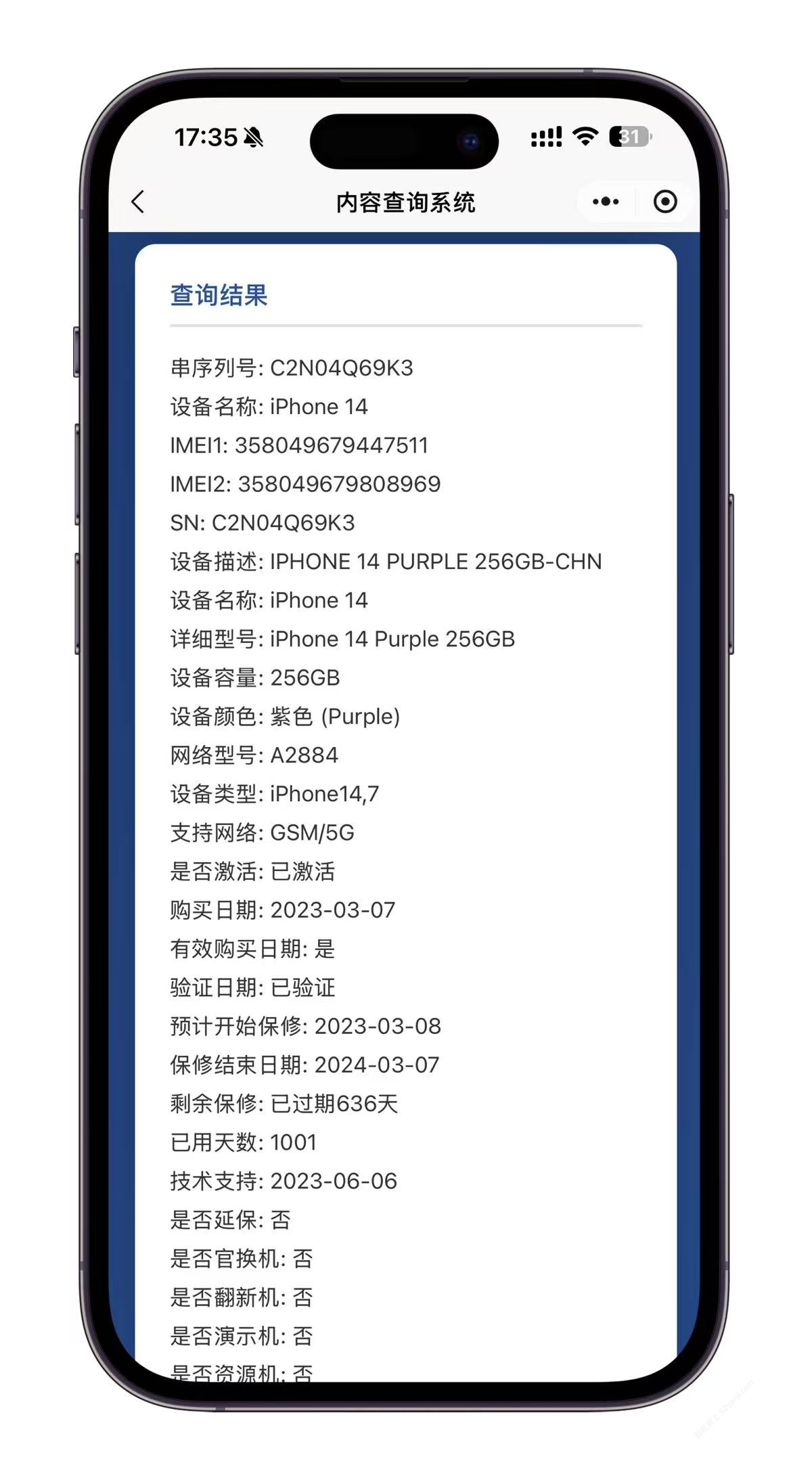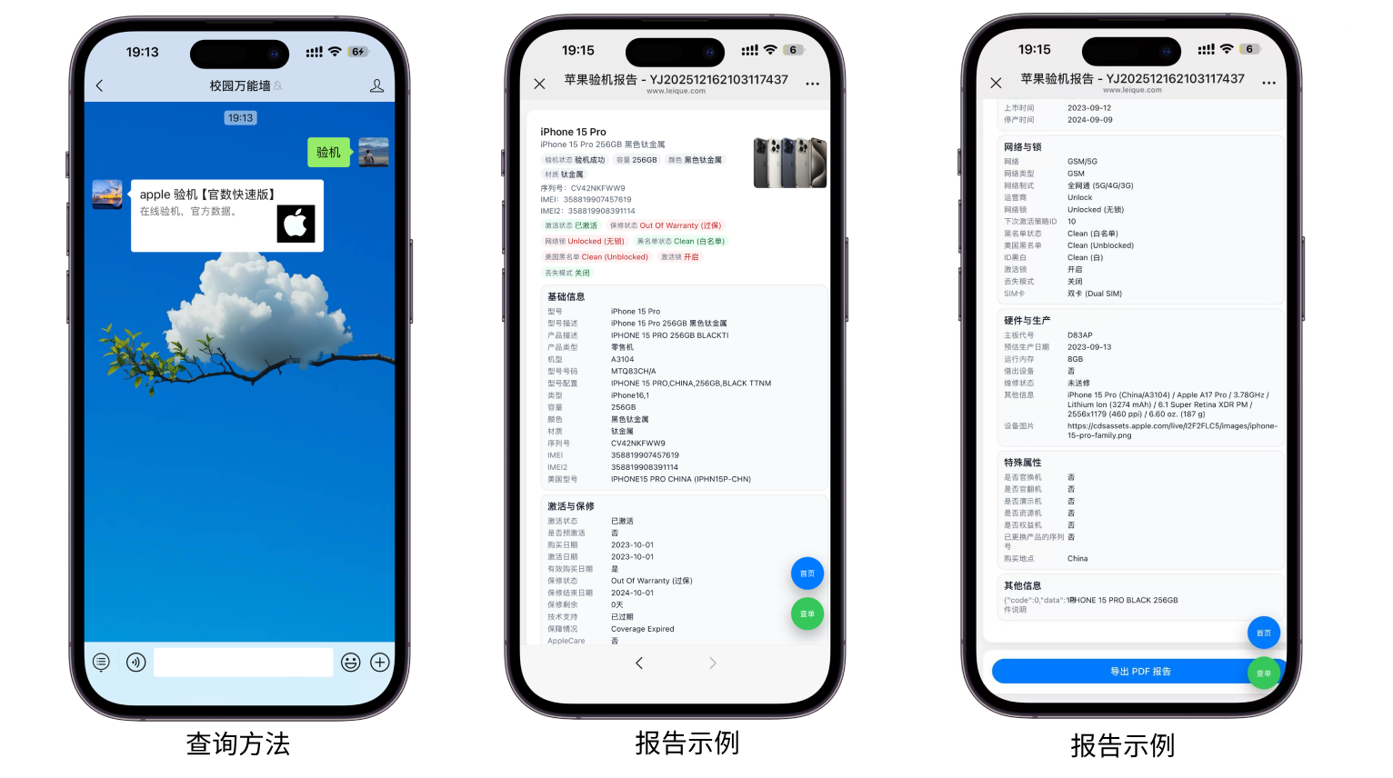 查询方法: 搜索公众号【校园万能墙】关注后回复【验机】来两个字可以获取隐藏的验机链接(截至发稿日还是有效的)